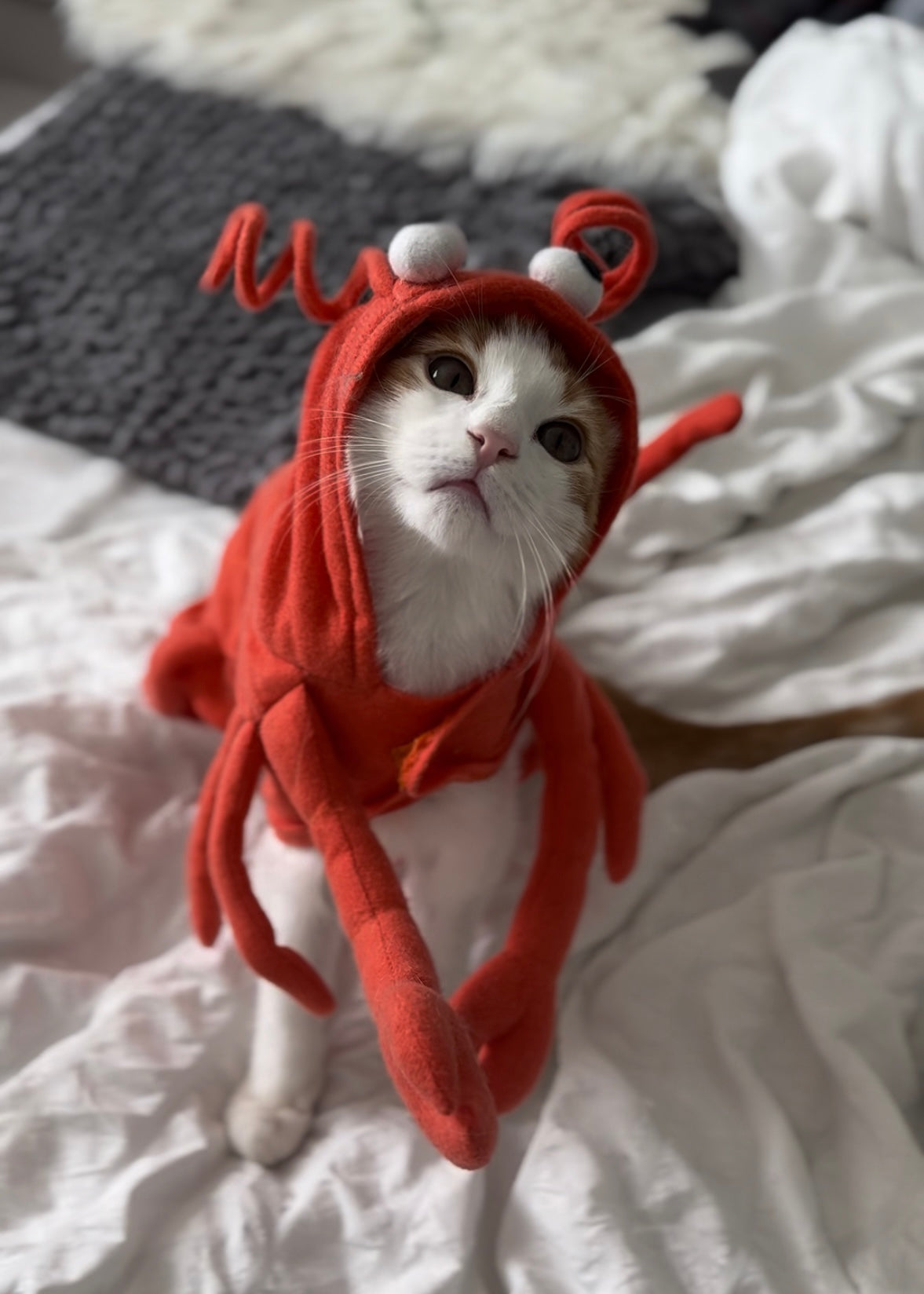 We found Toad in a culvert underneath the train tracks by Castos when he was just 8 weeks old. He was severely injured and a few trips to the vet later, he had his back leg amputated along with a toe on his other foot. Now fully healed, Toad loves chasing treats down the hall, playing on the screened porch with his friends and snuggling up next to me at bedtime.